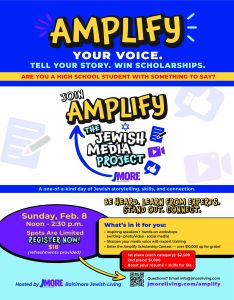 Jmore invites high school students to come together for Amplify: The Jewish Media Project, exploring what it means to be Jewish today — through your own voice and perspective.